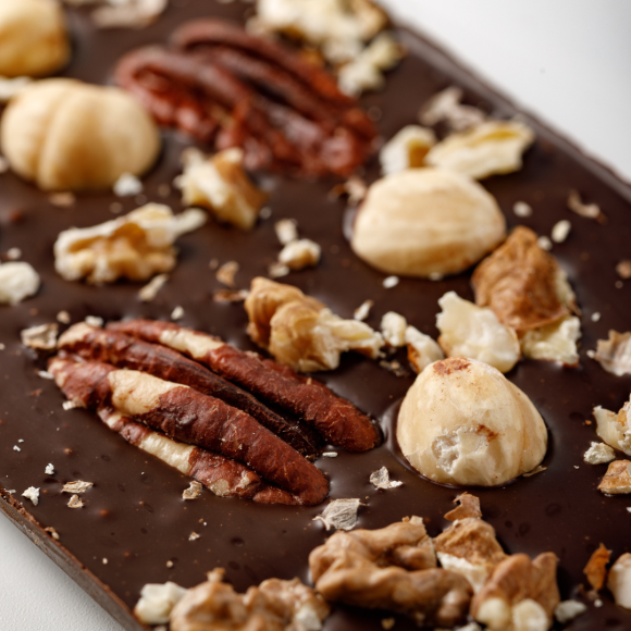 Шоколад черный (пекан) – настоящее произведение искусства, где темный, глубокий вкус классического черного шоколада дополняется нежным, сладким ароматом и текстурой бережно отобранных и прожаренных орехов пекан, фундука и грецкого ореха. При каждом укусе этот шоколад раскрывает вам свой многогранный, богатый вкус, полный нежности и насыщенности. Он способен радовать ваши вкусовые рецепторы и создавать незабываемые ощущения удовольствия. Черный шоколад с пеканом – это восхитительное сочетание богатого и насыщенного вкуса классического черного шоколада с нежными и ароматными орехами пекан. Орехи пекан содержат много ненасыщенных жиров, которые могут поддерживать здоровье сердца и уменьшать риск развития сердечно-сосудистых заболеваний, а также витамины и минералы, такие как витамин Е, цинк и магний, способствующие общему здоровью. Какао, из которого изготовлен шоколад, содержит антиоксиданты, которые помогают бороться со свободными радикалами в организме и защищают клетки от повреждений. Чем выше содержание какао в шоколаде, тем меньше сахара в нем и тем больше пользы для здоровья. В нашем случае общее содержание какао-продуктов в шоколаде составляет не менее 71%, что указывает на его высокое качество и потенциальную пользу.