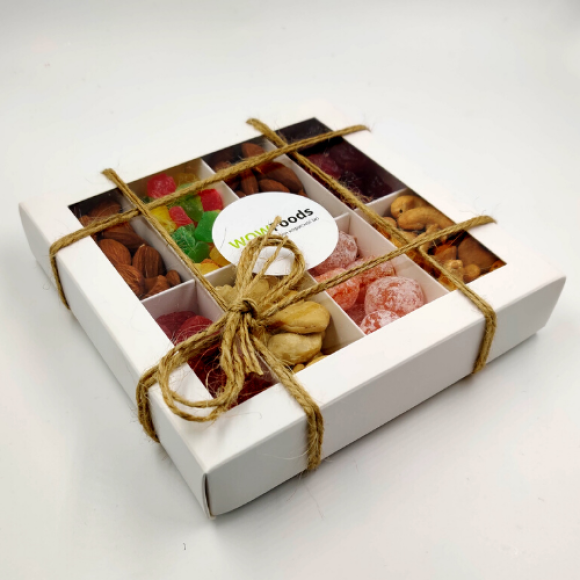 Цікаве поєднання смаків та кольорів в одній коробці - набір 8. Наші спеціалісти підібрали найкращі та найвисокоякісніші горіхи та сухофрукти, які порадують своїм смаком та поживністю. Набір 8 буде до вподоби як дорослим, так і дітям. Ви можете зробити приємний подарунок своїм рідним та близьким, порадувати їх вибухом смаків та ароматів. Мікс з сухофруктів та горіхів стане у пригоді кожному. До складу набору входять чотири види сухофруктів і 4 види горіхів: