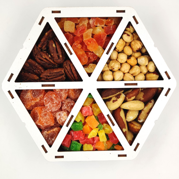Спробуйте ідеальне поєднання користі та смаку! У нашому наборі горіхів та сухофруктів ви знайдете:
