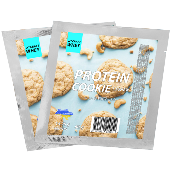 Печиво протеїнове з кешью - це вишукане гастрономічне творіння, що поєднує в собі користь і чарівні смакові властивості. Борошно пшеничне, використане у виробництві цього печива, дарує йому ніжний та кремовий колір, а сироватковий протеїн забезпечує печиво високим вмістом якісного білка, необхідного для підтримки м'язової маси та загального здоров'я. Насичений горіховий смак кеш'ю в поєднанні з пастою кеш'ю додає хрусткості та екзотичності. Ароматні чорниці, журавлина та вишня збагачують печиво антиоксидантами та вітамінами, сприяючи підтримці імунітету та загального здоров’я. Білок яєчний, що входить до складу печива протеїнового, відзначається своєю важливою роллю у підтримці здорового функціонування організму, а масло вершкове додає ніжність та розкішний аромат. Цукор тростинний робить печиво солодким, зберігаючи його призначення як джерела білка та поживних речовин. Ваніль додає фінальний штрих, роблячи це печиво протеїнове з кешью справжнім десертом або смачним перекусом.